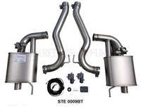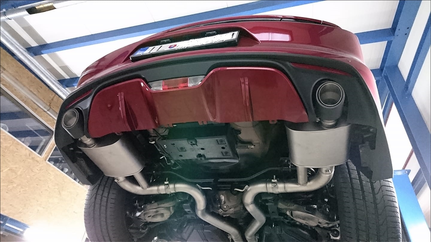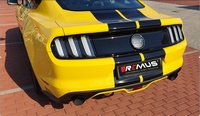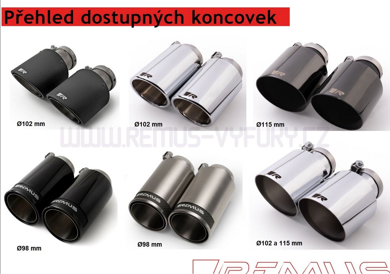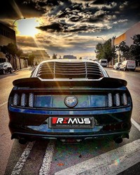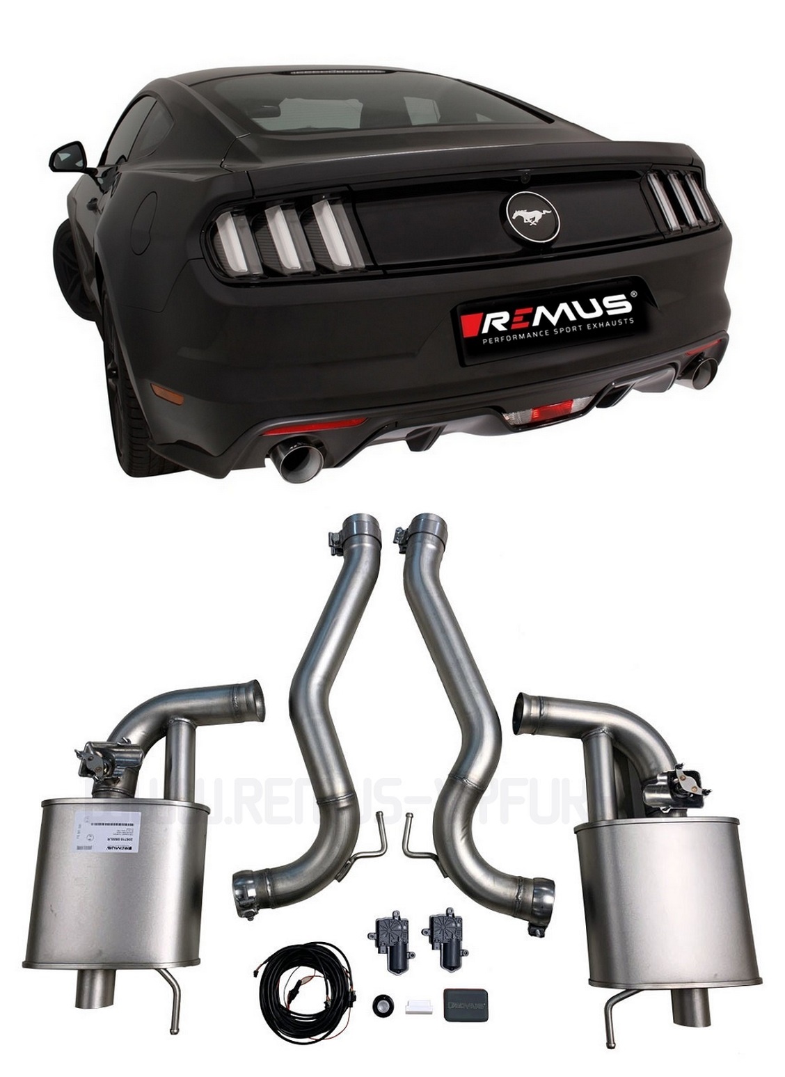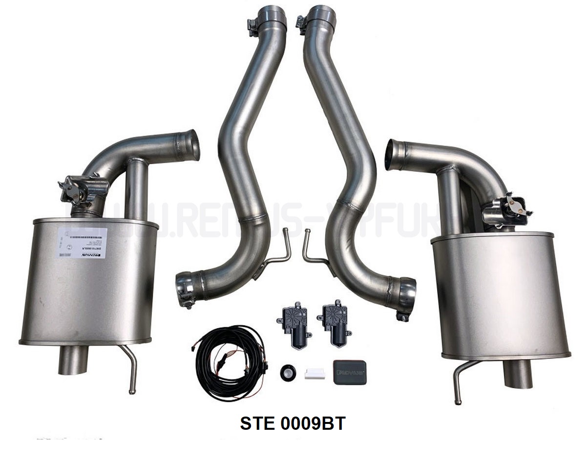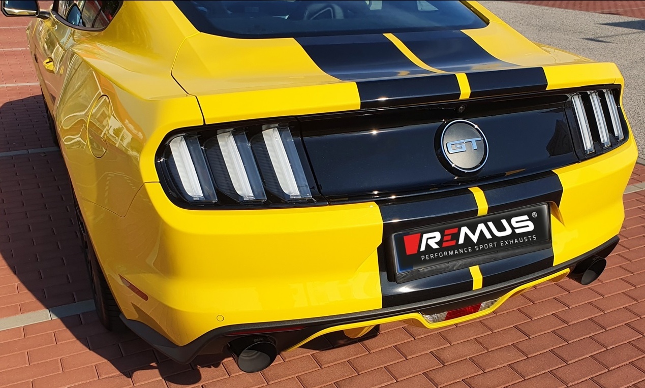 Zadní homologované výfukové tlumiče (použitý nerez T304 a následně tryskaný) s integrovanými ventily pro regulaci zvuku. Tyto tlumiče mají pro mnohem atraktivnější zvuk v porovnání s originálním systémem speciálně navrženou vnitřní konstrukci a dále používají průměr trubek 76mm místo originálních pouhých 57mm! Především pak tyto zadní tlumiče obsahují integrované ventily pro možnost regulace zvuku za pomocí bezdrátového tlačítka – detaily o regulaci zvuku viz popis u externí regulační jednotky STE 0009 BT. Samotná regulace a související proudění spalin je sladěno s použitou mechanickou konstrukcí výfukového systému – nejde tedy jen o pouhé zabudování ventilů, ale jejich sladění. Výsledkem souhry těchto úprav a mnoha okem neviditelných detailů, které byly v Rakousku dlouho laděny v akustické komoře je pak skutečně famózní zvuk, kdy je zcela využit potenciál tohoto plnotučného V8, aniž by se jeho projev stal jakkoliv obtěžujícím pro vás nebo vaši drahou polovičku. A to ani na delších cestách. Vše je dosaženo díky zmiňovanému profesionálnímu odladění v akustické komoře mimo frekvenční oblasti, které jsou pro člověka nepříjemné. Těmito možnostmi žádný americký výrobce systémů nedisponuje a kromě precizní přesné strojařiny je tohle ten nejzásadnější rozdíl proti ostatním značkám na trhu. REMUS má zkušenosti s laděním a pravidelnou výrobou systémů pro zákazníky z řad automobilek jako Aston Martin, AMG, M-Performance, Lamborghini nebo Porsche (včetně aktuální 911 992). Máte tedy 100% jistotu, že volíte pravděpodobně to nejlepší řešení na trhu, což potvrzuje i fakt, že REMUS je i dodavatelem do Ford Performance dílů v rámci EU. Pouze s námi jako výhradním distributorem REMUS na aftermarket máte ale možnost externí regulace zvuku, které není v síti Ford dostupná. Bonusem je při otevřených klapkách také citelné zvýšení výkonu o cca 10k v širším spektru otáček a točivého momentu až o cca 40 Nm ve středních otáčkách – viz graf v galerii! Výfukové ventily (klapky) integrované v zadních tlumičích jsou externě ovládány za pomocí bezdrátového REMUS tlačítka, které komunikuje s REMUS ovládací jednotkou (umístěná v kufru). Ta pak ovládá samotné klapky na základě vašich pokynů a velikostí otevření klapek ovlivňujete zvuk. Ten se může měnit i podle otáček automaticky. Tuto přídavnou sestavu nutné objednat jako volitelné příslušenství (obj.č. "STE 0006BT" – zde se dočtete i další detaily). Hutnost a hloubku zvukového projevu ještě ovlivníte výběrem středního dílu - nutné vybrat jednu ze 2 možností, bez středového dílu není montáž možná. Uvedená cena zadních tlumičů je bez koncovek a bez regulace. Koncovky si vyberte dle Vašeho vkusu ze seznamu níže. Systém má zároveň platnou EU homologaci a v žádném státě EU ani u nás na STK nebudete řešit nikdy žádné komplikace.
